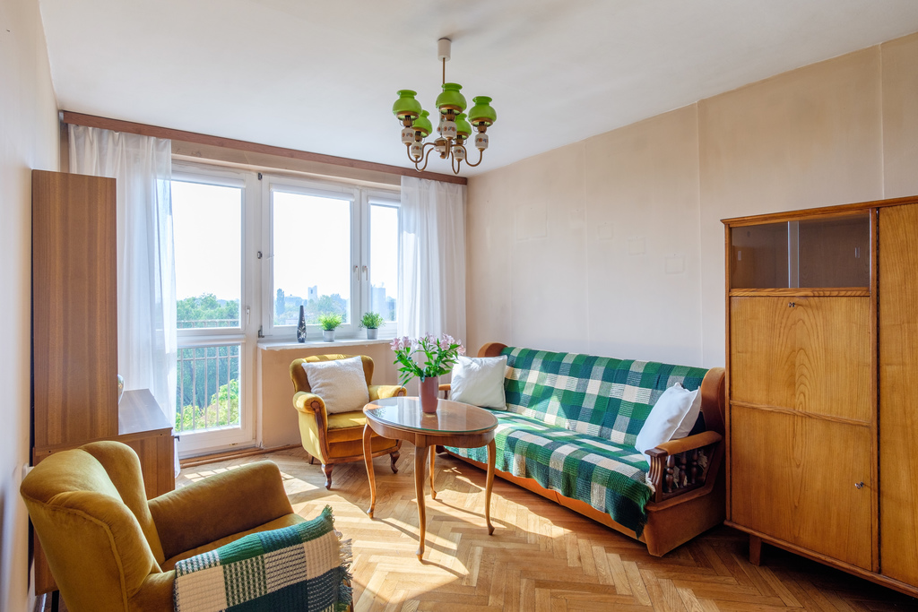 Prezentowanie mieszkanie znajduje się na 7 piętrze w 10 piętrowym bloku z lat 70’ przy alei Dwudziestolatków 20. Mieszkanie ma duży potencjał. Na niewielkim metrażu przestrzeń została tak zorganizowana, że daje odczucie, że lokal jest dużo większy niż w rzeczywistości.