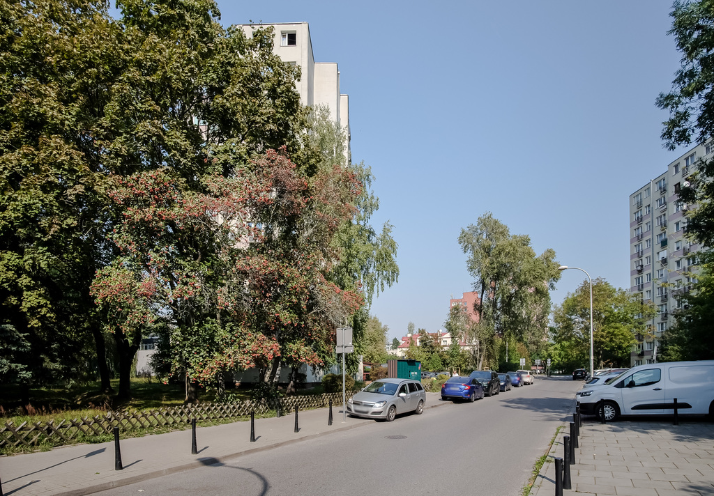 Najbliższa okolica jest bardzo zielona i doskonale skomunikowana z resztą miasta. Dojazd co centrum tramwajem lub autobusem zajmuje ok. 15 min. Na lotnisko Chopina dojedziemy w 10 min. To na pewno duży atut dla każdego, kto na co dzień korzysta z komunikacji miejskiej.