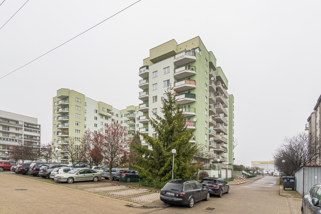 Lokal położony jest na 4 piętrze w 8 piętrowym budynku z windą z 2001 roku. Osiedle jest ogrodzone, z bramą wjazdową na pilota, na terenie ogólnodostępne miejsca parkingowe.