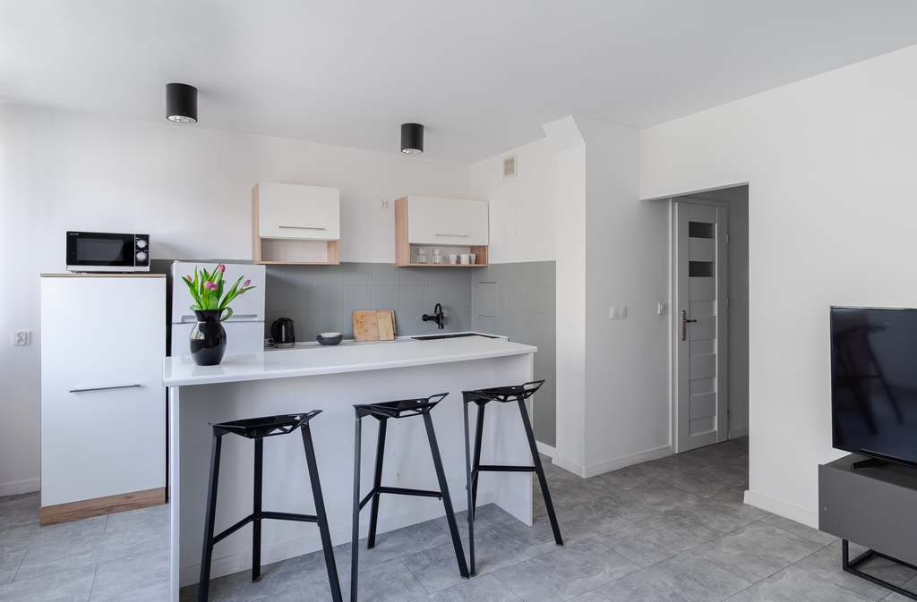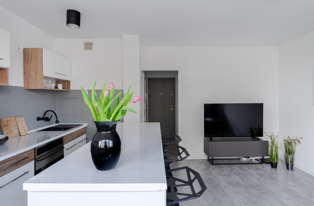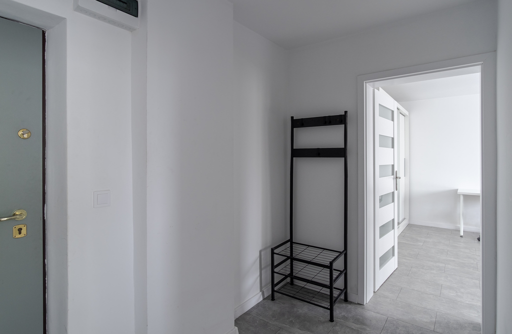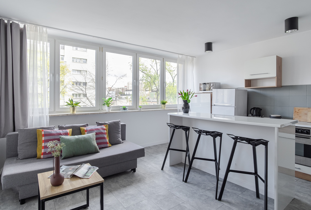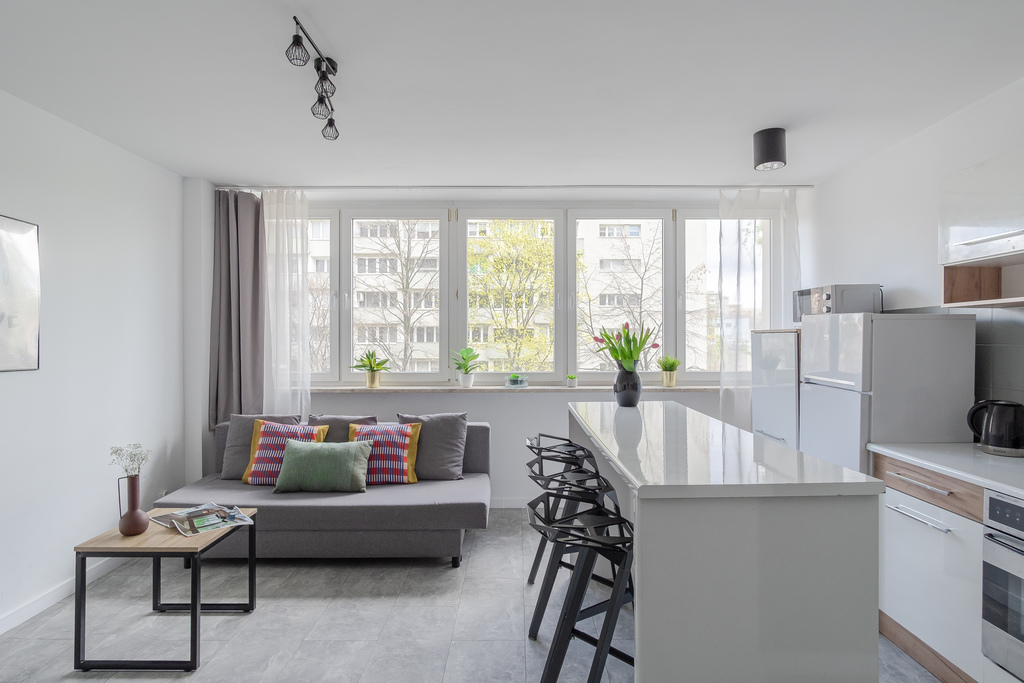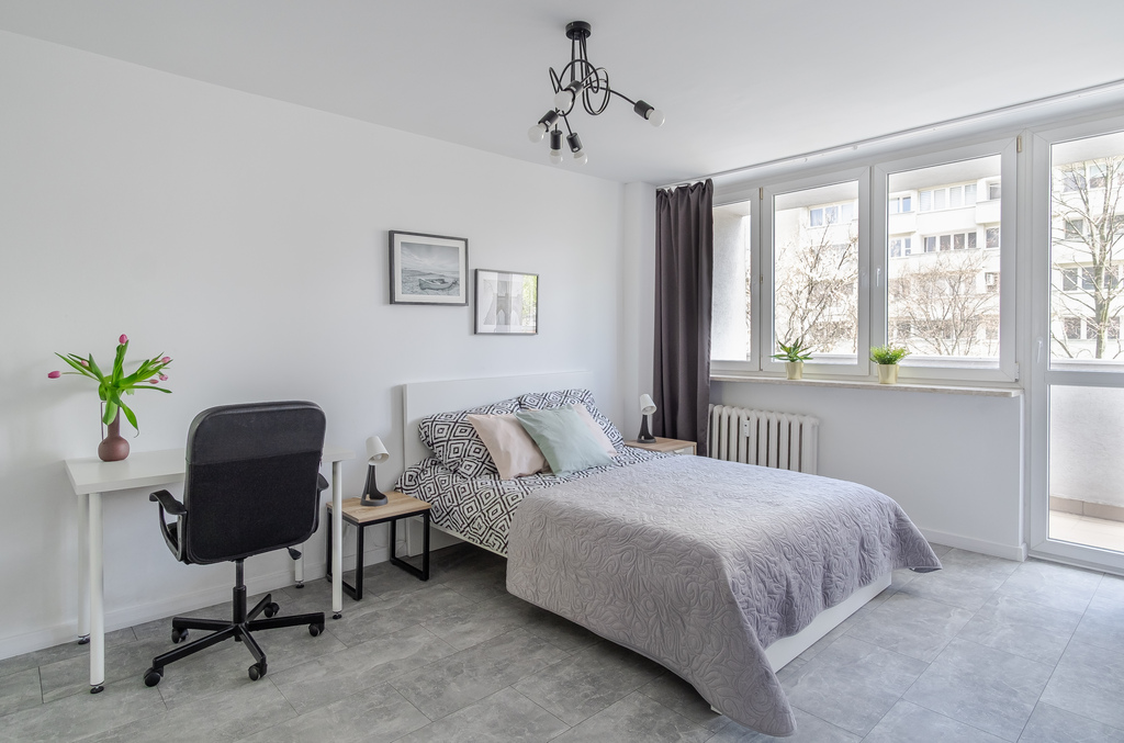 Lokal ma powierzchnię blisko 50 m², a jego dużym atutem są przestronne pomieszczenia. Sypialnia ma ok. 20 m², dzięki czemu nie zabraknie w niej miejsca na przestrzeń do pracy. Salon połączony z aneksem kuchennym jest równie przestronny. Całość jest bardzo jasna, a z okien rozciąga się widok na zieloną przestrzeń między blokami. Lokal przeszedł remont kilka lat temu – wymieniono m.in. instalację elektryczną. Na chwilę obecną wymaga jedynie odświeżenia.
