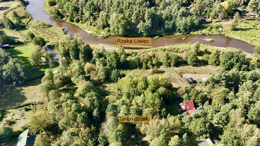 Prezentowana nieruchomość ma 780m² powierzchni. Teren jest płaski i porośnięty małymi drzewami (istnieje możliwość usunięcia ich). Działka jest w drugiej linii zabudowy od rzeki Liwiec. W upalnie dni już po 3 min. spaceru możemy zażyć orzeźwiającej kąpieli. Najbliższa okolica to liczne tereny zielone i niska rekreacyjna zabudowa. Działka to doskonałe miejsce dla wszystkich, którzy szukają miejsca na weekendowy wypad za miasto.