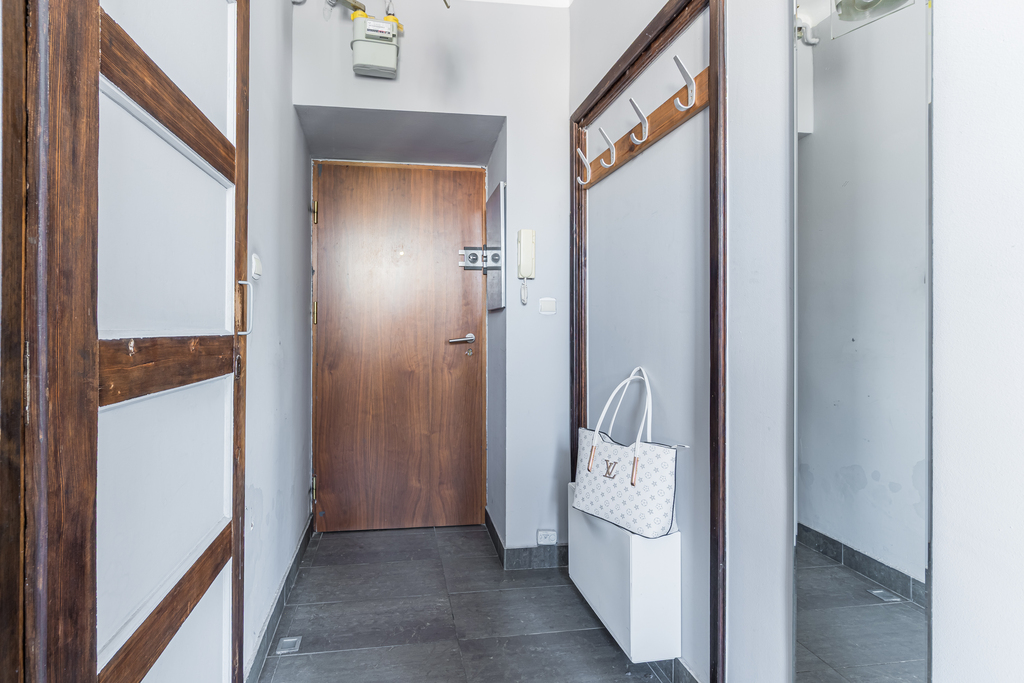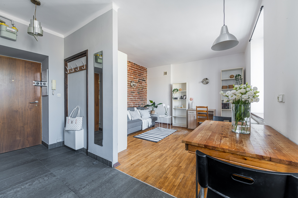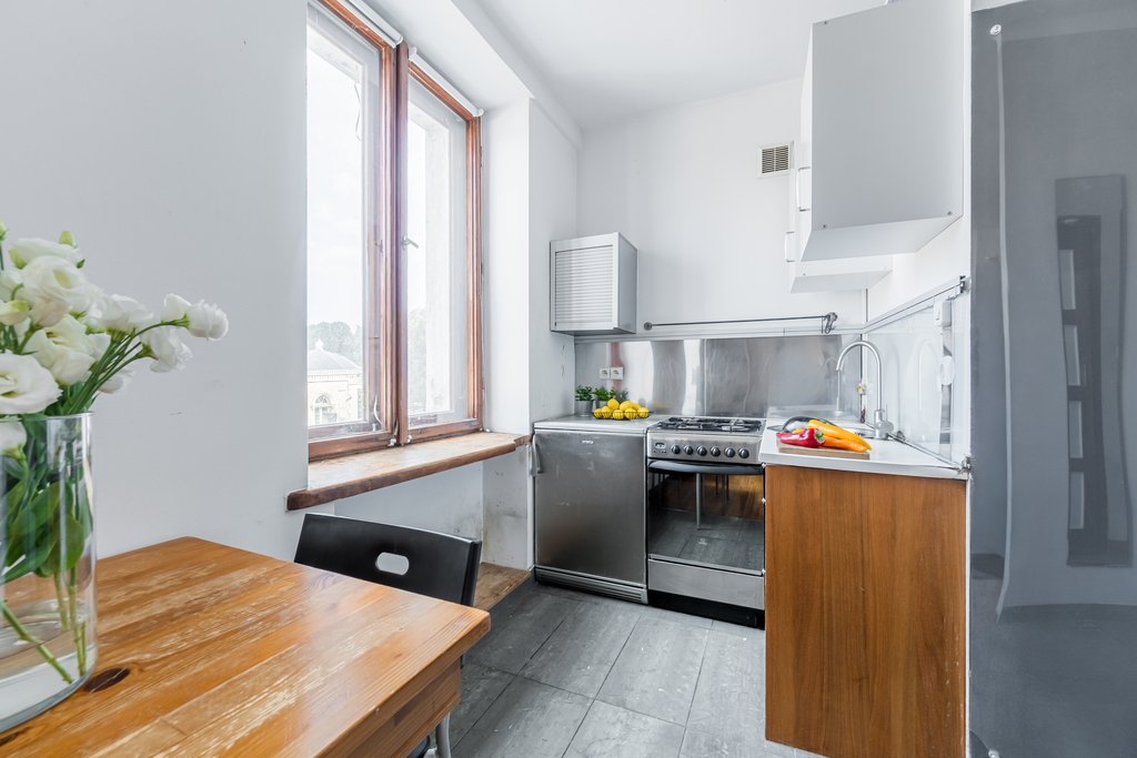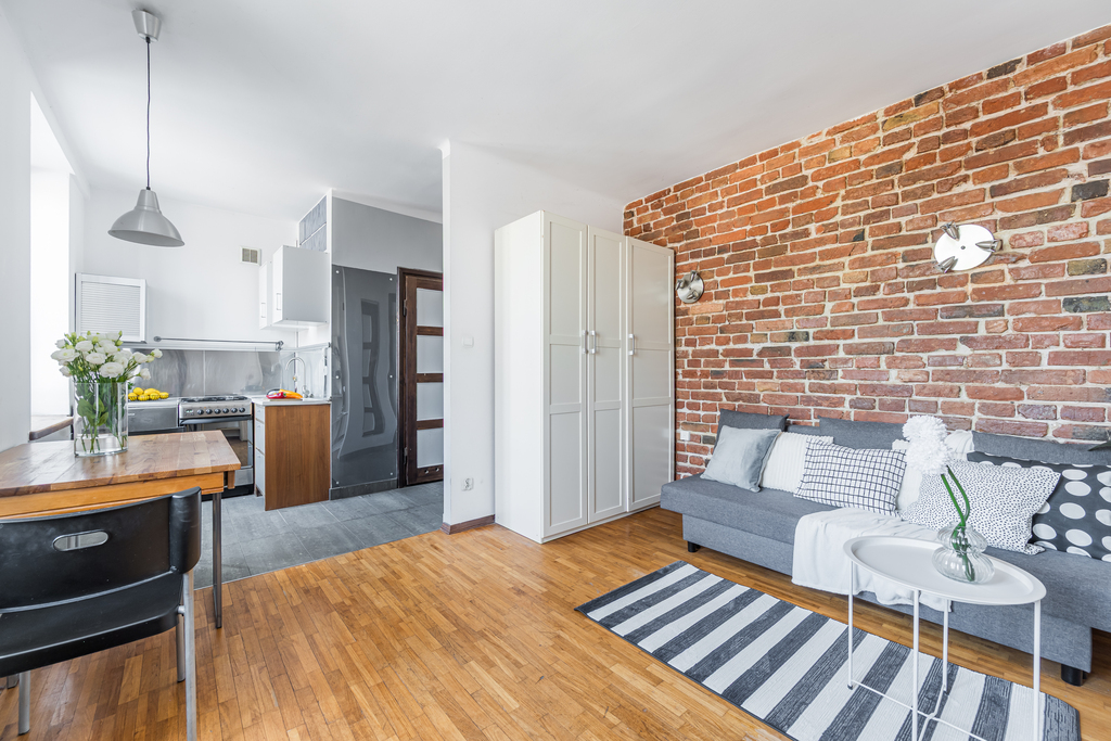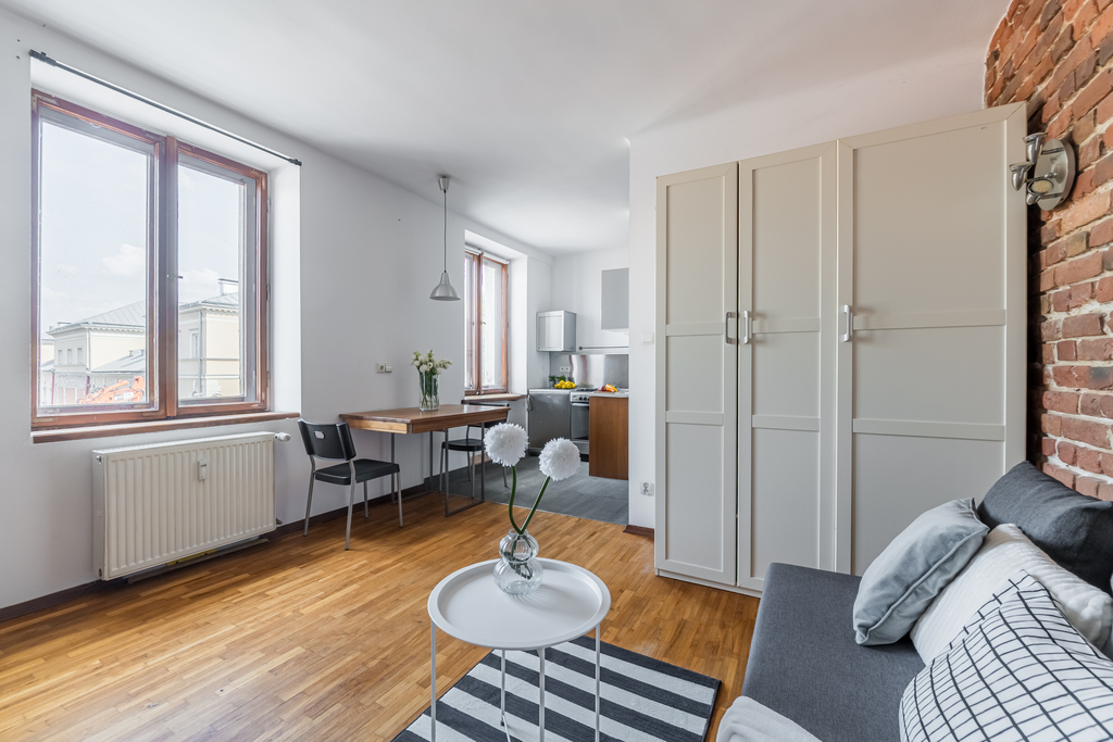 Nieruchomość składa się z jednego, dużego pokoju oraz aneksu kuchennego i łazienki. Z okien, które wychodzą na północny-wschód zobaczymy Wydział Dziennikarstwa, Informatyki i Biologii, który znajduje się dosłownie po drugiej stronie ulicy. W 5 minut dotrzemy na przestanek autobusowy i tramwajowy. Wokół sporo terenów zielonych: skwerki, parki, Bulwary Wiślane, Park Kazimierzowski, Ogród Biblioteki Uniwersyteckiej oraz wiele innych.