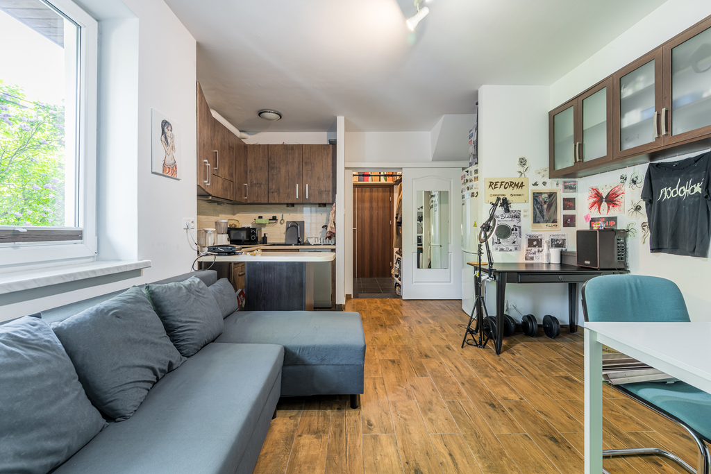 PRZYZIEMIE- mieszkanie ok.32 m2 (pokój, łazienka, kuchnia)- posiada wejście od strony ogrodu