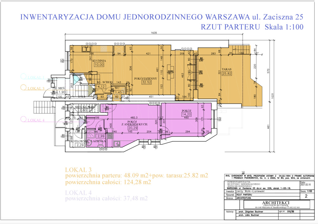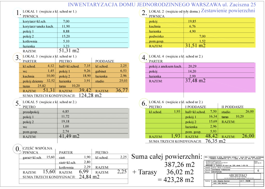 Segment (prawa strona) o powierzchni ok. 220 m2 to przestrzeń przygotowana do wynajmu. Składa się 4 niezależnych mieszkań. Zostały tutaj wydzielone następujące przestrzenie: