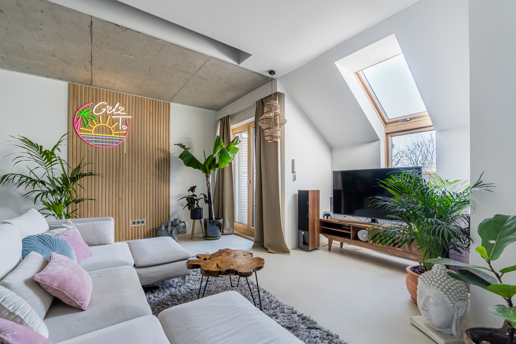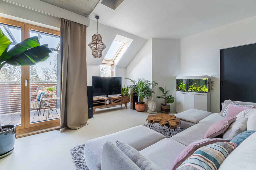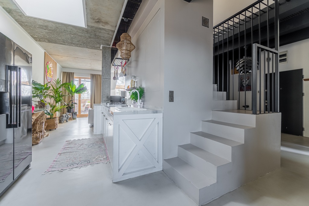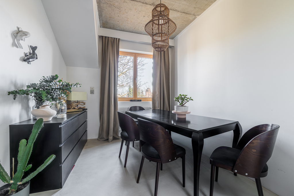 Powierzchnia z KW to ok.74 m2, dodatkowo do dyspozycji mamy atresolę (ok.26 m2), która zostało zaaranżowana na część mieszkalną i jest w pełni funkcjonalna. Mieszkanie wyróżnia się wysokimi sufitami (w najwyższym punkcie to aż 6,5 m) oraz dużą ilością okien, które zapewniają mnóstwo naturalnego światła i wyjątkowe poczucie przestrzeni. Ekspozycja wschodnia i zachodnia dają możliwość podziwiania pięknych wschodów i zachodów słońca. Dodatkowym atutem jest brak sąsiadów zaglądających w okna, co zapewnia duży komfort i prywatność. Mieszkanie zostało całkowicie wyremontowane w 2021 roku, a każdy element jest dopracowany z dbałością o detale. Jest gotowe do zamieszkania bez dodatkowych kosztów.
