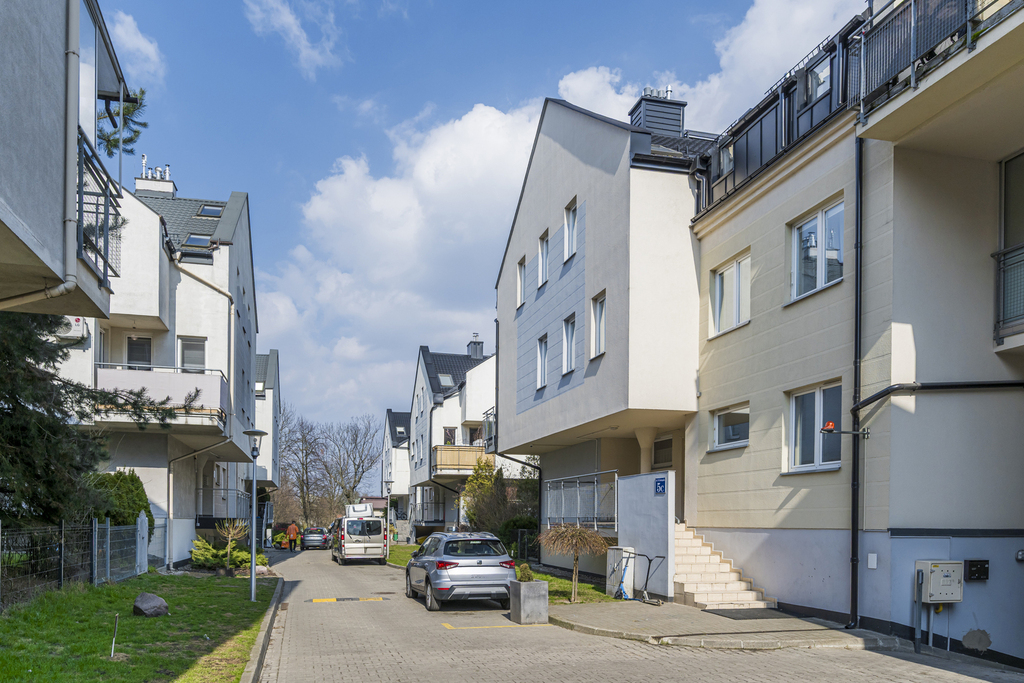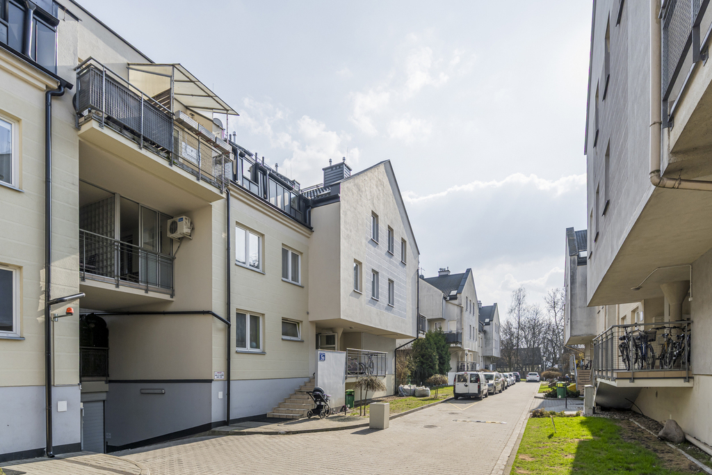 Nieruchomość położona jest na 2 piętrze oraz poddaszu w bloku z 2007 roku, na kameralnym, rodzinnym osiedlu w Markach przy ul. 11 Listopada 5.