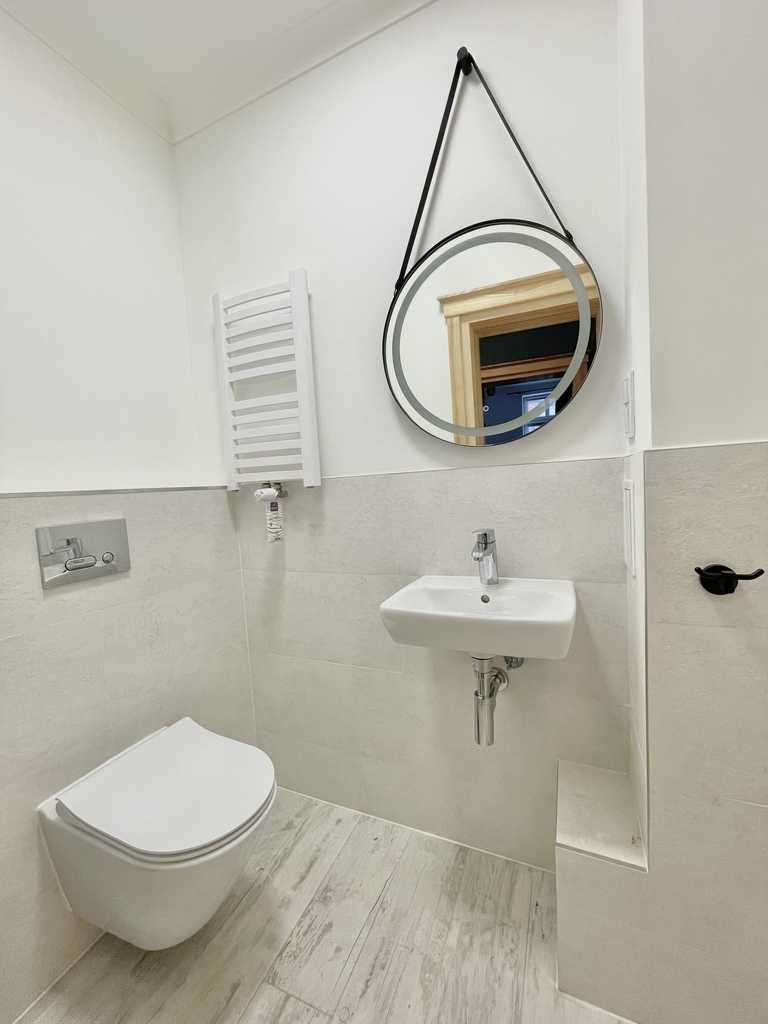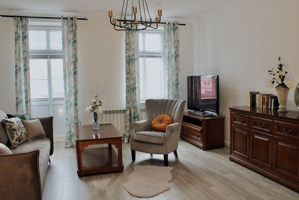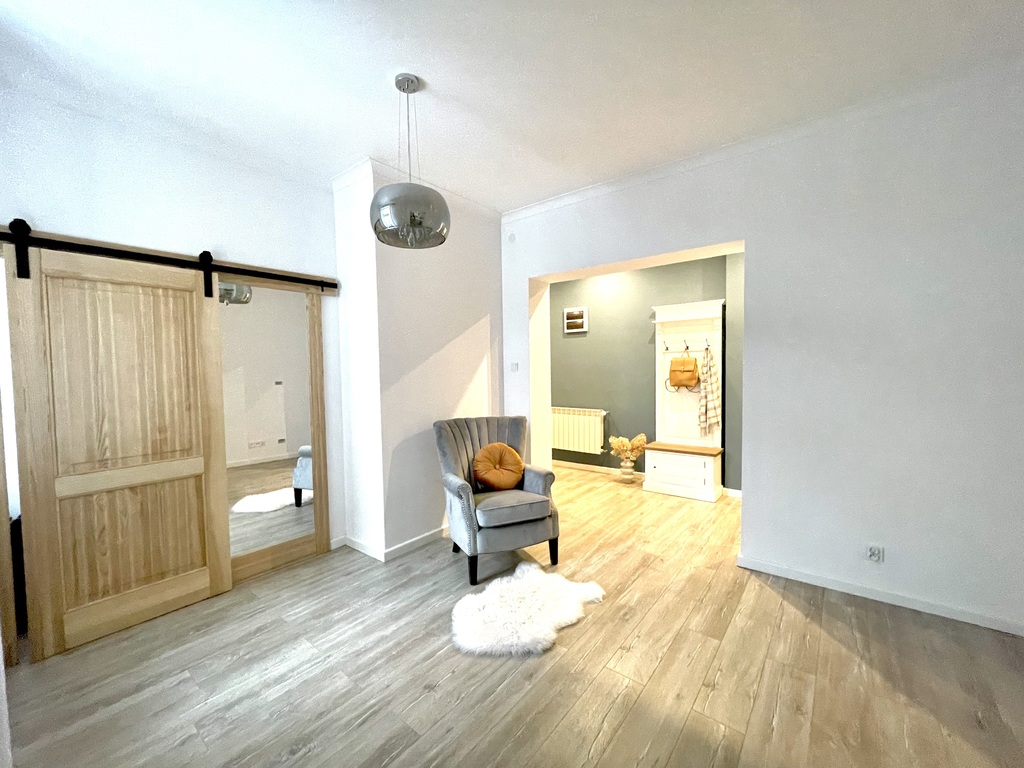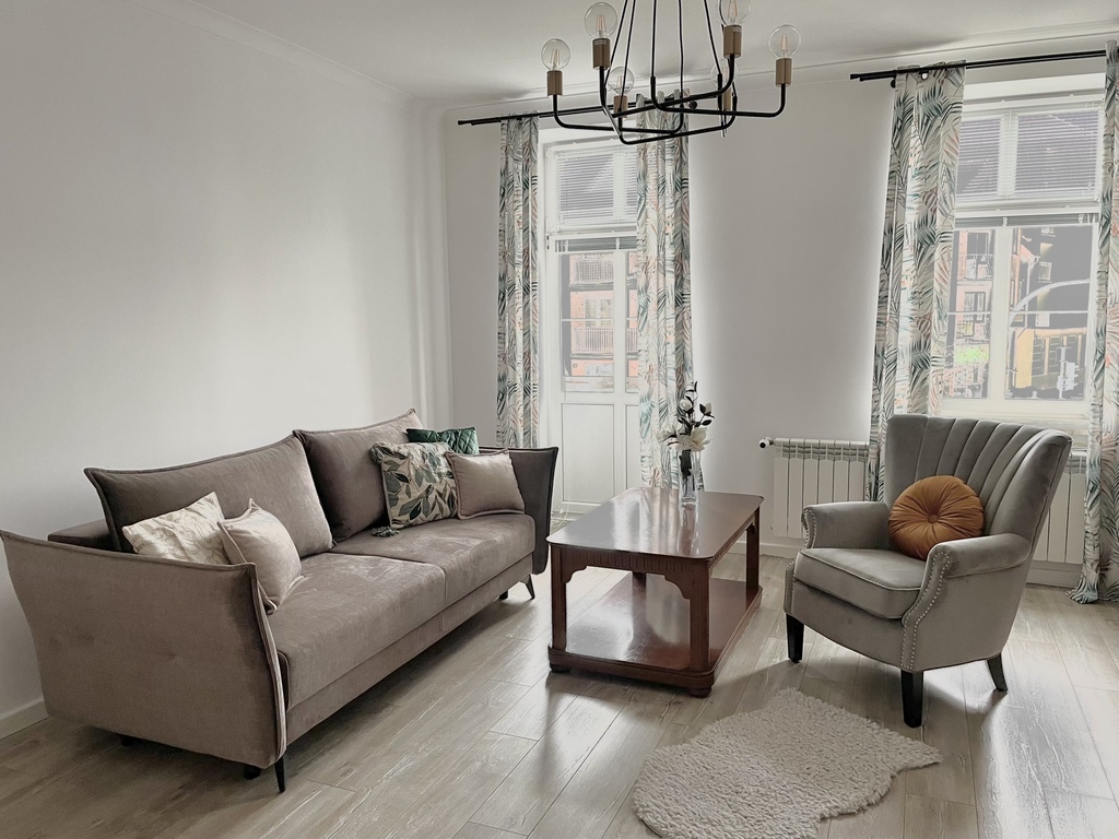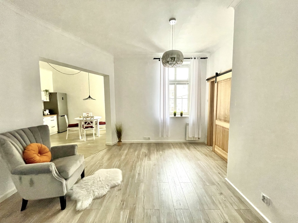 Mieszkanie położone jest na 1 piętrze w kamienicy z 1923 roku przy ul. Wojska Polskiego 17. Wysokie sufity, przestronne pomieszczenia oraz wysoki standard wykończenia to niewątpliwe zalety tego mieszkania.
