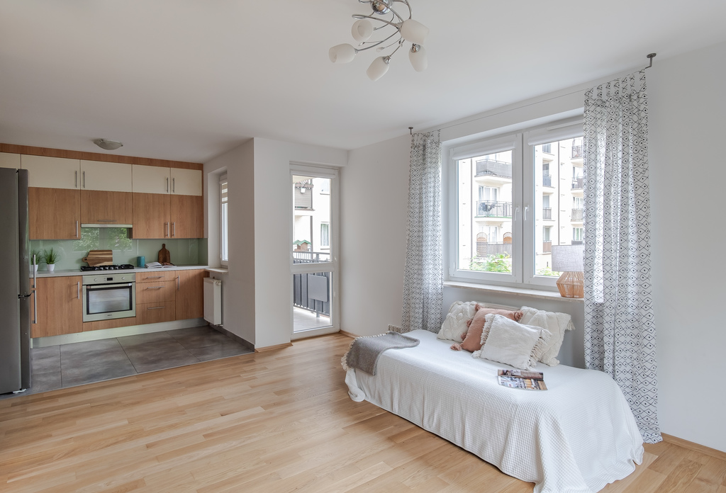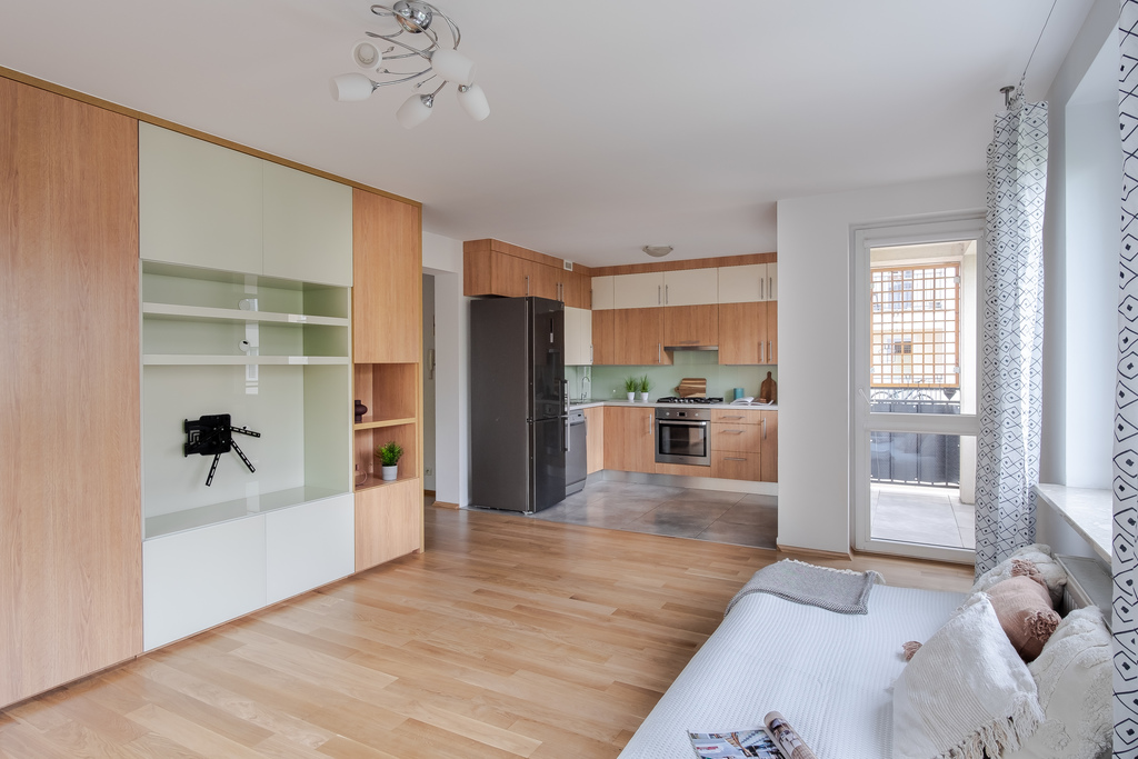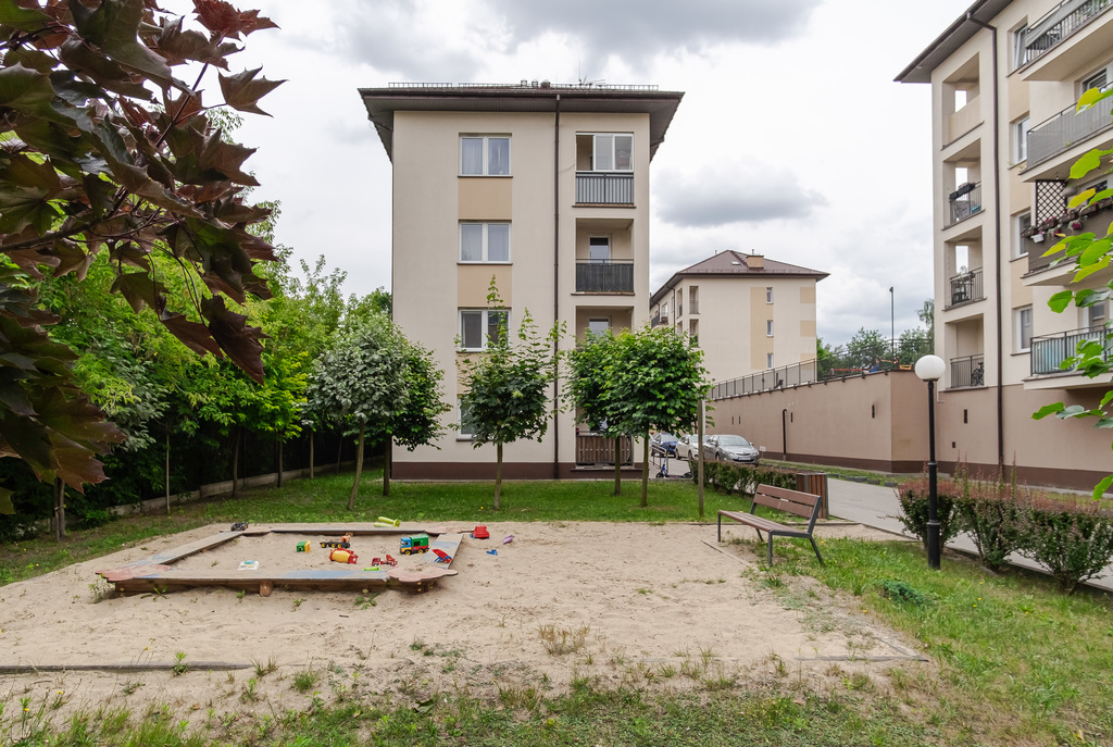 Mieszkanie jest ciche, z terenami zalesionymi w sąsiedztwie.