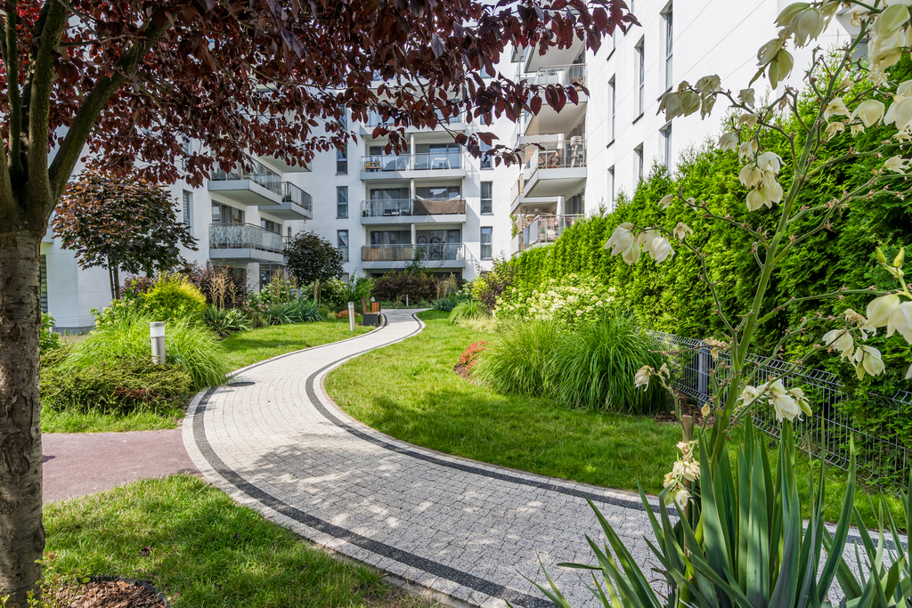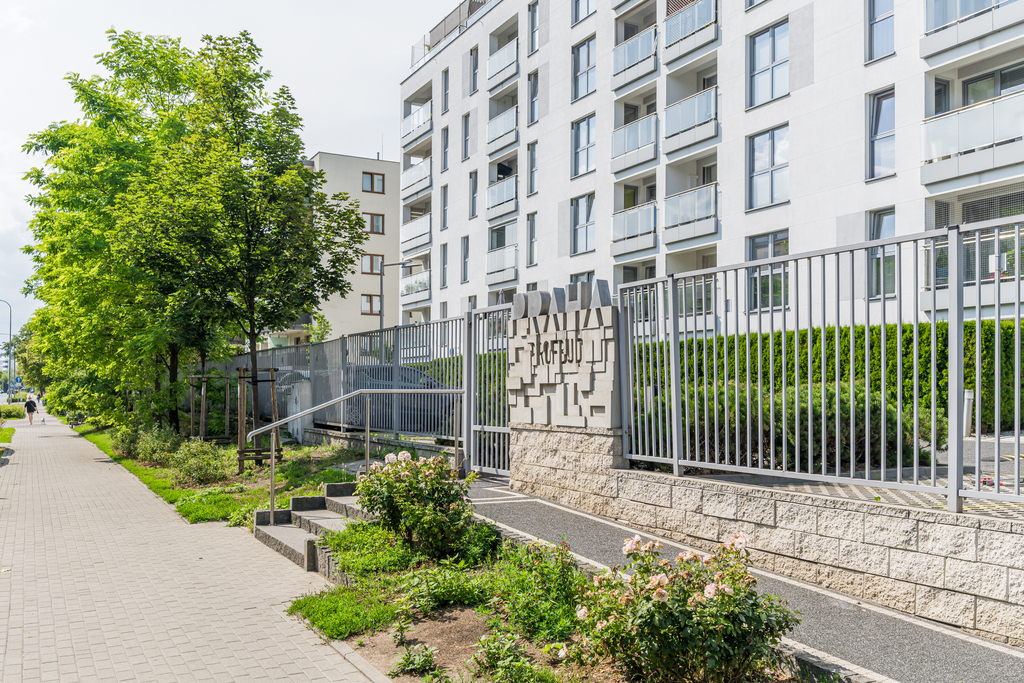 Prezentowana nieruchomość mieści się na czwarty piętrze 6-piętrowego bloku z 2015r. przy ul. Chrzanowskiego 2 (deweloper PROFBUD). Zlokalizowane jest na zamkniętym, kameralnym, nowoczesnym osiedlu z całodobową ochroną i monitoringiem. Elewacja budynku, jak i przestronne części wspólne wykonane zostały z estetycznych, wysokojakościowych materiałów. Na piętro prowadzą dwie windy. Na tyłach budynku zlokalizowane jest patio wraz z placem zabaw, do których prowadzi dodatkowe wejście.