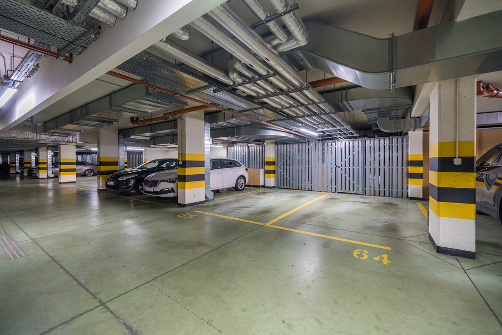Do mieszkania przynależy miejsce postojowe w podziemnej hali garażowej (płatne dodatkowo 50 000 PLN) oraz przestronny boks rowerowy zlokalizowany za miejscem postojowym o powierzchni 6,4 m² (płatny dodatkowo 30 000 PLN).