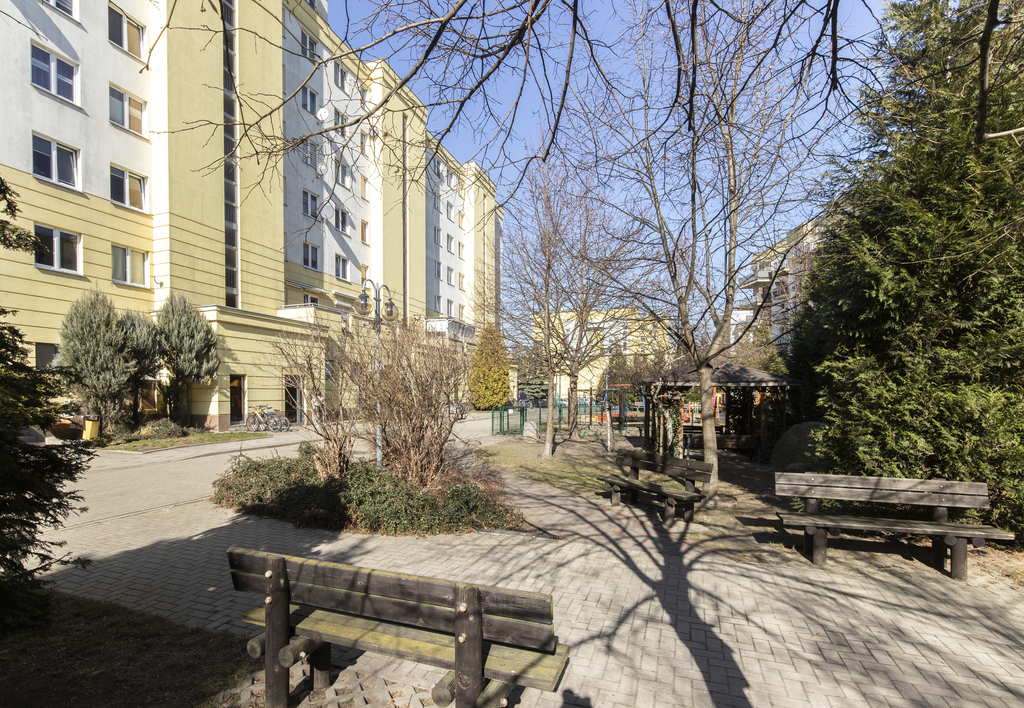 Najbliższa okolica to pełna infrastuktura miejska, liczne lokale usługowe i sklepy, ale też szkoły czy parki. Bliskość lotniska oraz łatwy dojazd do centrum Warszawy komunikacją miejską to kolejne atuty.