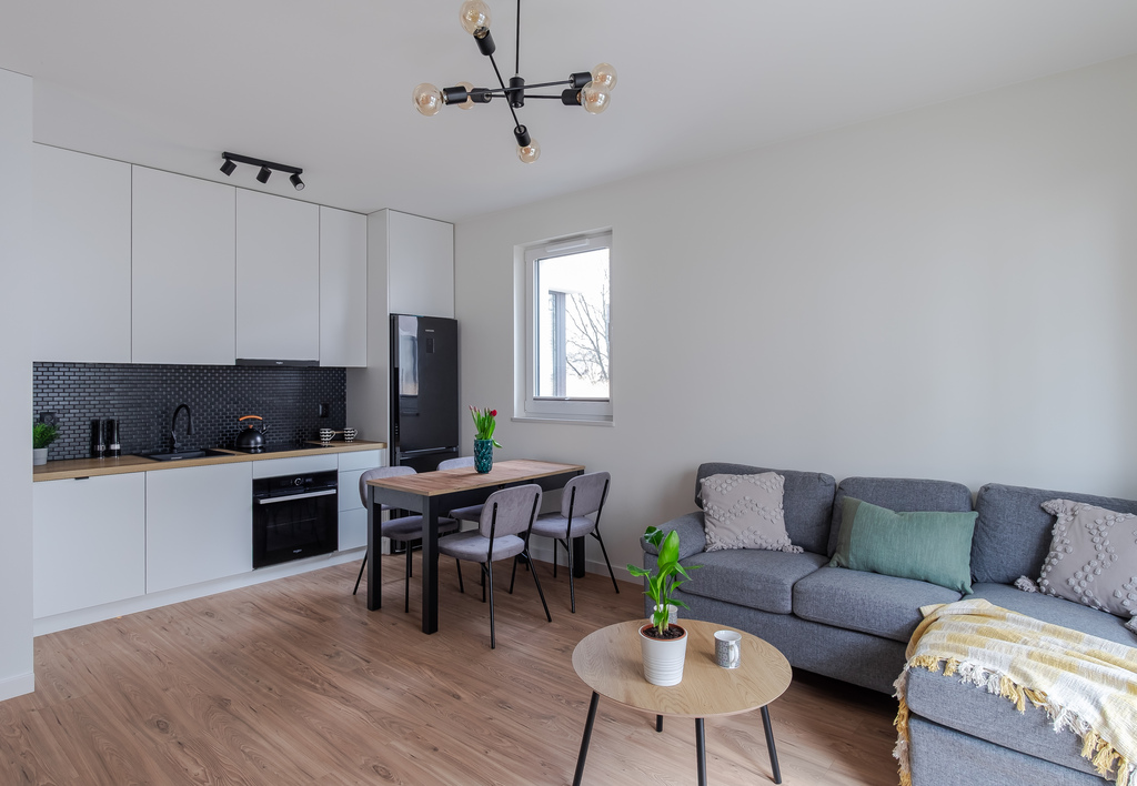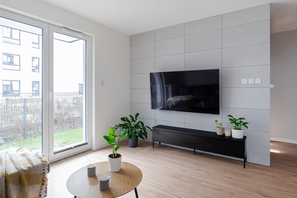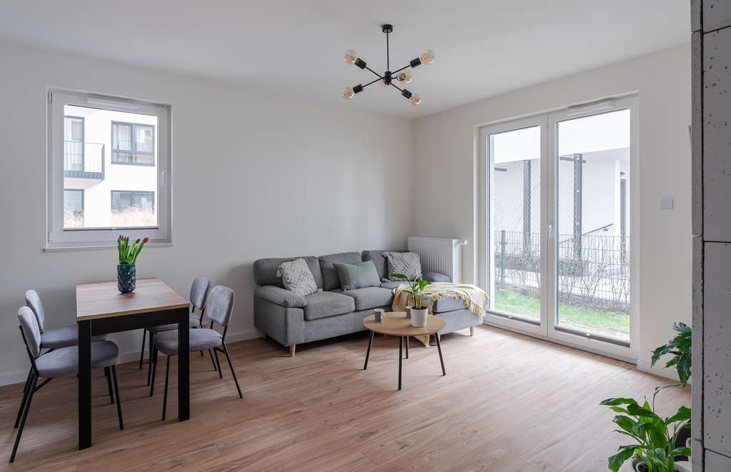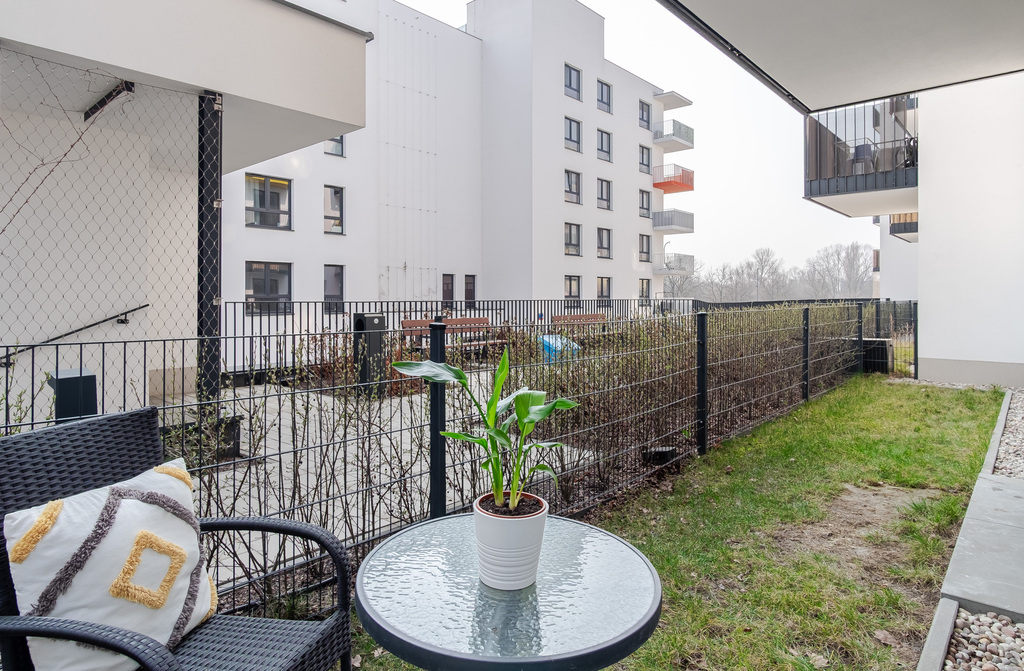 Na ponad 40m² mamy wydzieloną przestronna sypialnię(10,6m²) wyposażoną w dużą, zabudowaną szafę , toaletę (4,5m²), a centralnym puntem mieszkania jest obszerny salon połączony z aneksem. Ta część ma blisko 21m² i bez problemu znalazło się w niej miejsce na stół czy kanapę. Kolejnym atutem lokalu jest narożny ogródek, który okala mieszkanie(30m²). To doskonałe miejsce na poranną kawę.