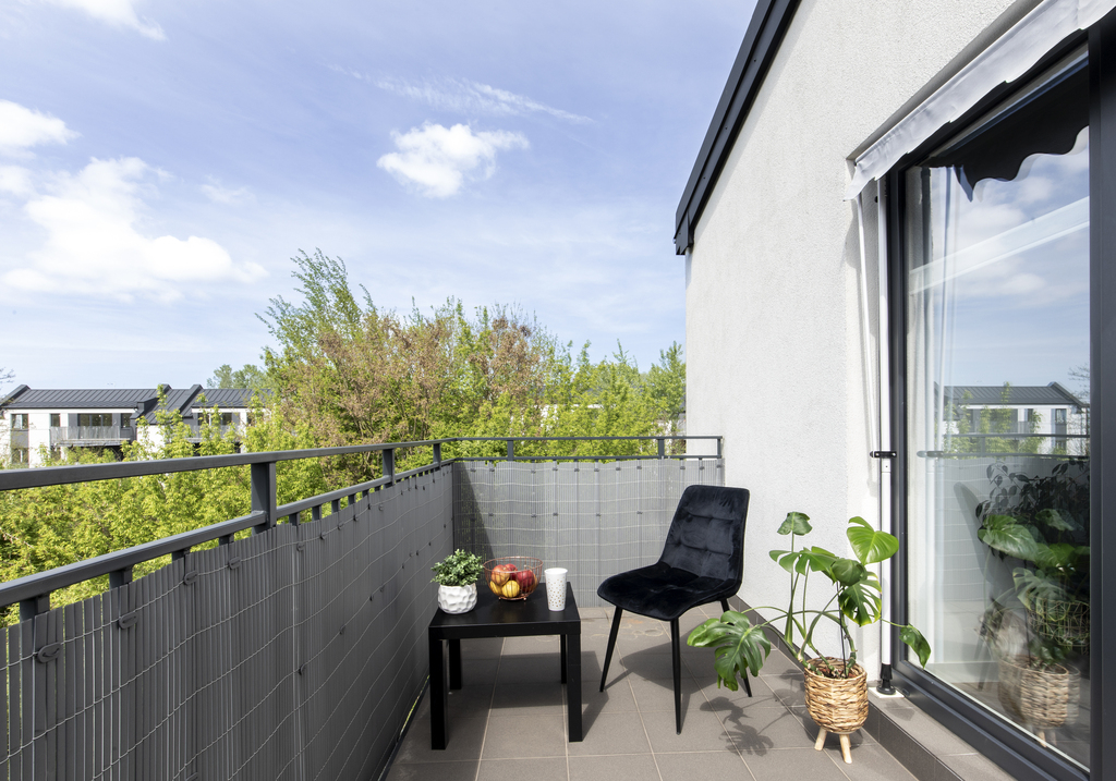 Z salonu prowadzi wyjście na szeroki, 8-metrowy balkon, idealny na poranną kawę lub wieczorny relaks.
