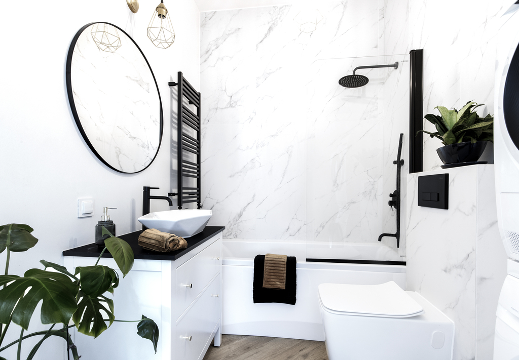 Łazienka wyposażona jest w wannę i ma powierzchnię niemal 5 m².