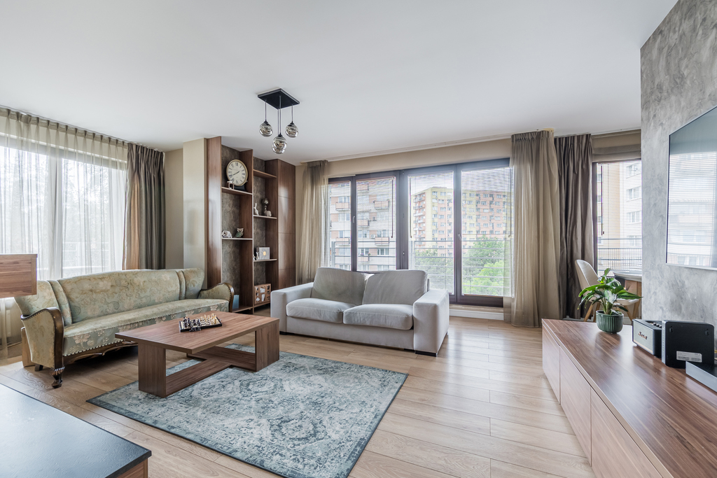 Doskonała komunikacja - liczne przystanki autobusowe i tramwajowe, do Dworca Zachodniego dojedziemy w 10 minut bezpośrednim autobusem, podobnie na Lotnisko Chopina dojedziemy bezpośrednim autobusem w ok. 30 minut.