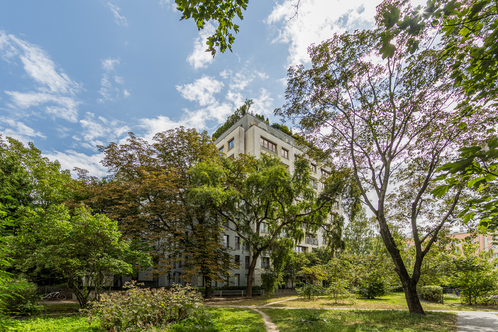 Na sprzedaż przestronne i słoneczne 2-pokojowe mieszkanie na Starej Ochocie przy ul. Kaliskiej 23, położone na 5 z 9 pięter kameralnego apartamentowca "Rezydencja Kaliska" z 2011r. Budynek wyposażony jest w całodobową recepcję i ochronę. Obszerne patio z dużą ilością kwiatów i krzewów, a także liczne drzewa rosnące wokół budynku zapewniają poczucie spokoju i prywatności. Budynek wykonany z wysokiej jakości materiałów, w bardzo dobrym stanie technicznym.