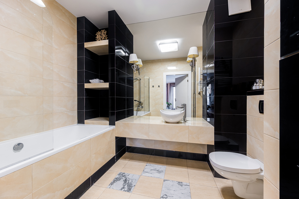 Łazienka (5,9 mkw) stanowi idealną przestrzeń do relaksujących kąpieli.