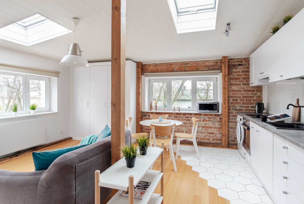 To miejsce z pewnością przypadnie do gustu osobom ceniącym sobie poczucie przestrzeni - wszystko za sprawą wysokości sufitu (od 230 cm do ponad 300 cm) wyposażonego w okna dachowe, które doskonale doświetlają całe mieszkanie. Dodatkowego klimatu dodają blisko stuletnie, odsłonięte cegły.