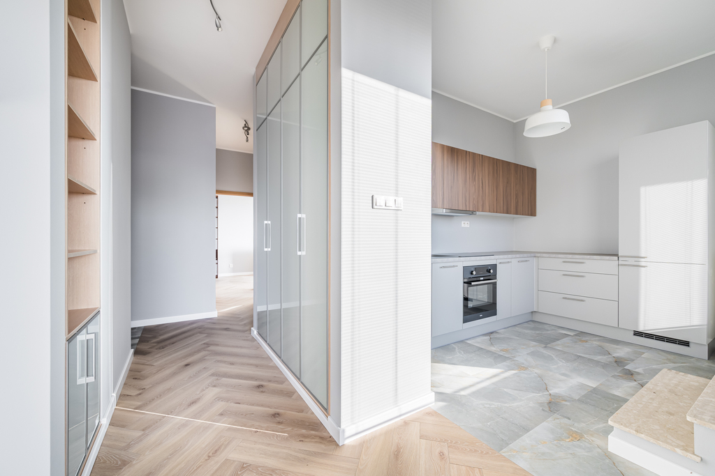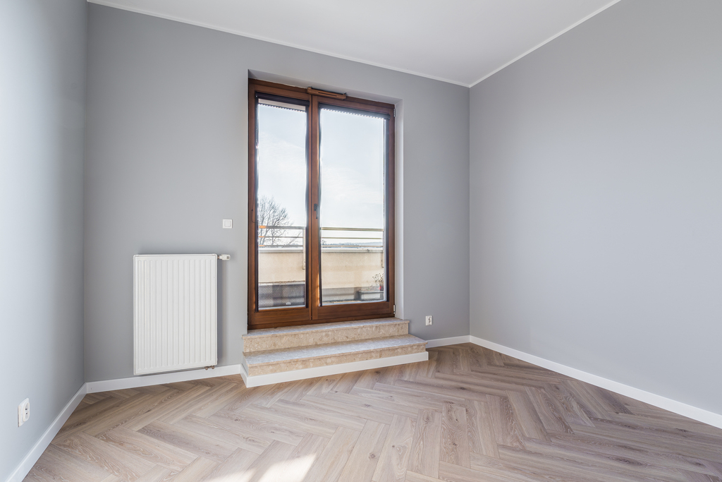 Generalny remont – nowa podłoga w klasyczną jodełkę, świeże malowanie, nowoczesna kuchnia z nowym sprzętem AGD, klimatyzacja, żaluzje w każdym pokoju.