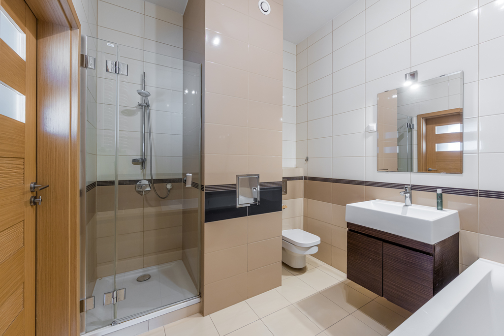 -Duża łazienka z wanną i prysznicem